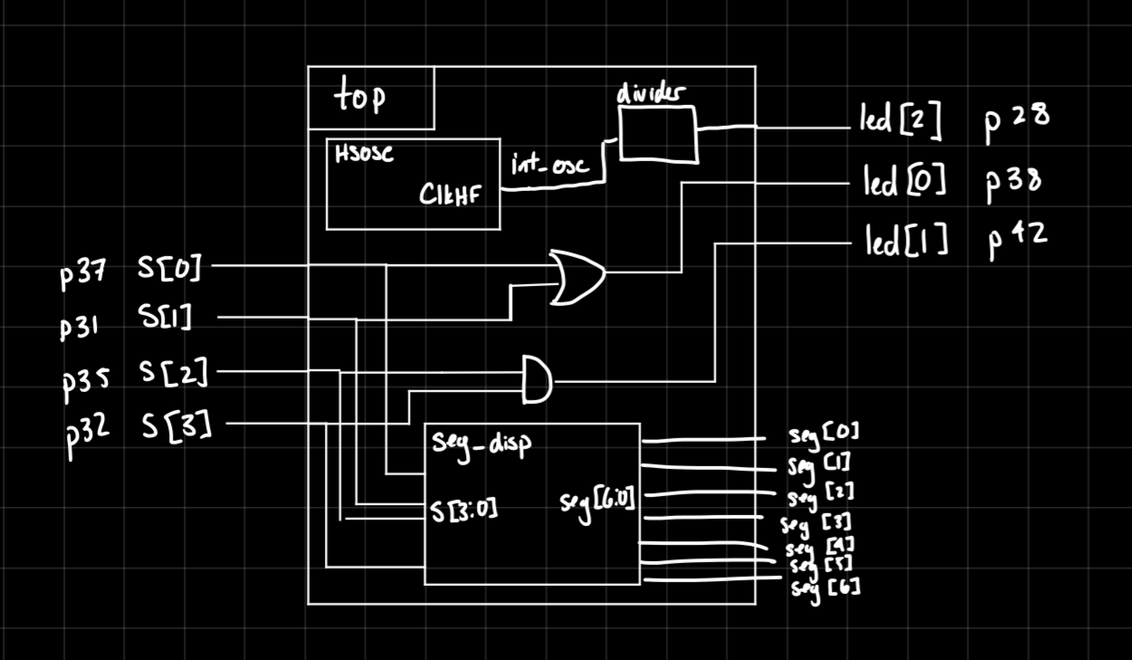 The design was able to successfully operate a 7-segment display as well as drive the on-board LED using the HSOSC. I spent 15 hours working on this lab.