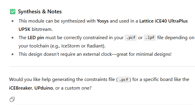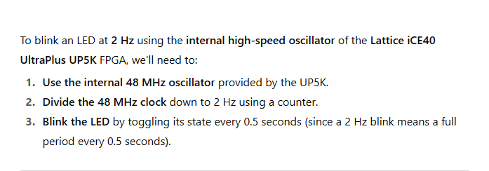 led_state <= ~led_state; // Toggle LED every 0.5s → 2 Hz