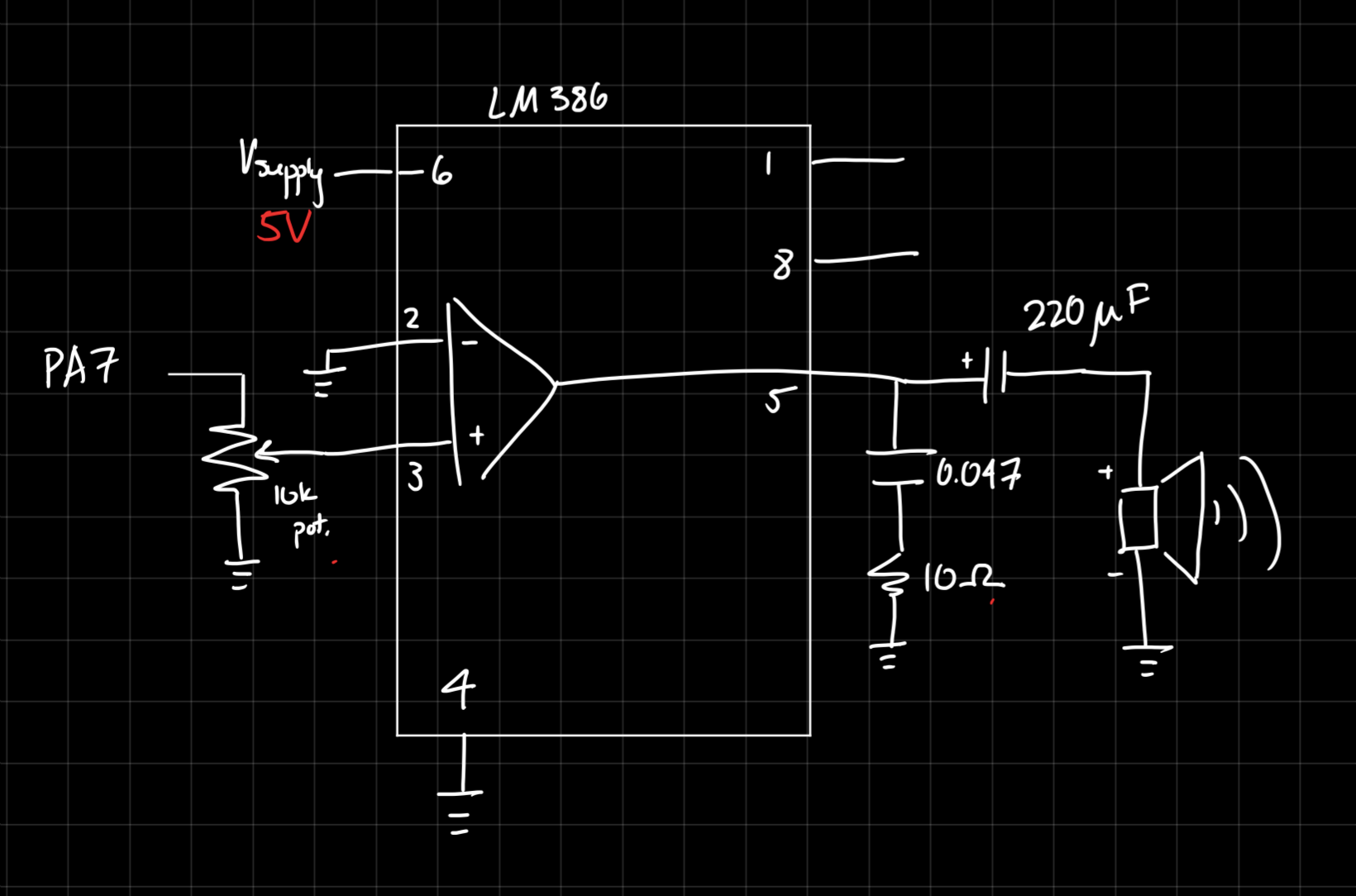 The signal from the Nucleo board (specifically, pin A2). is too small to appropriatley power a speaker. As such, the signal had to be amplified.