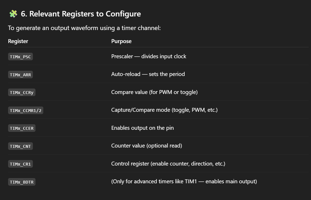 TIM2->CCR1 = 90; // Compare (toggle mid-way)